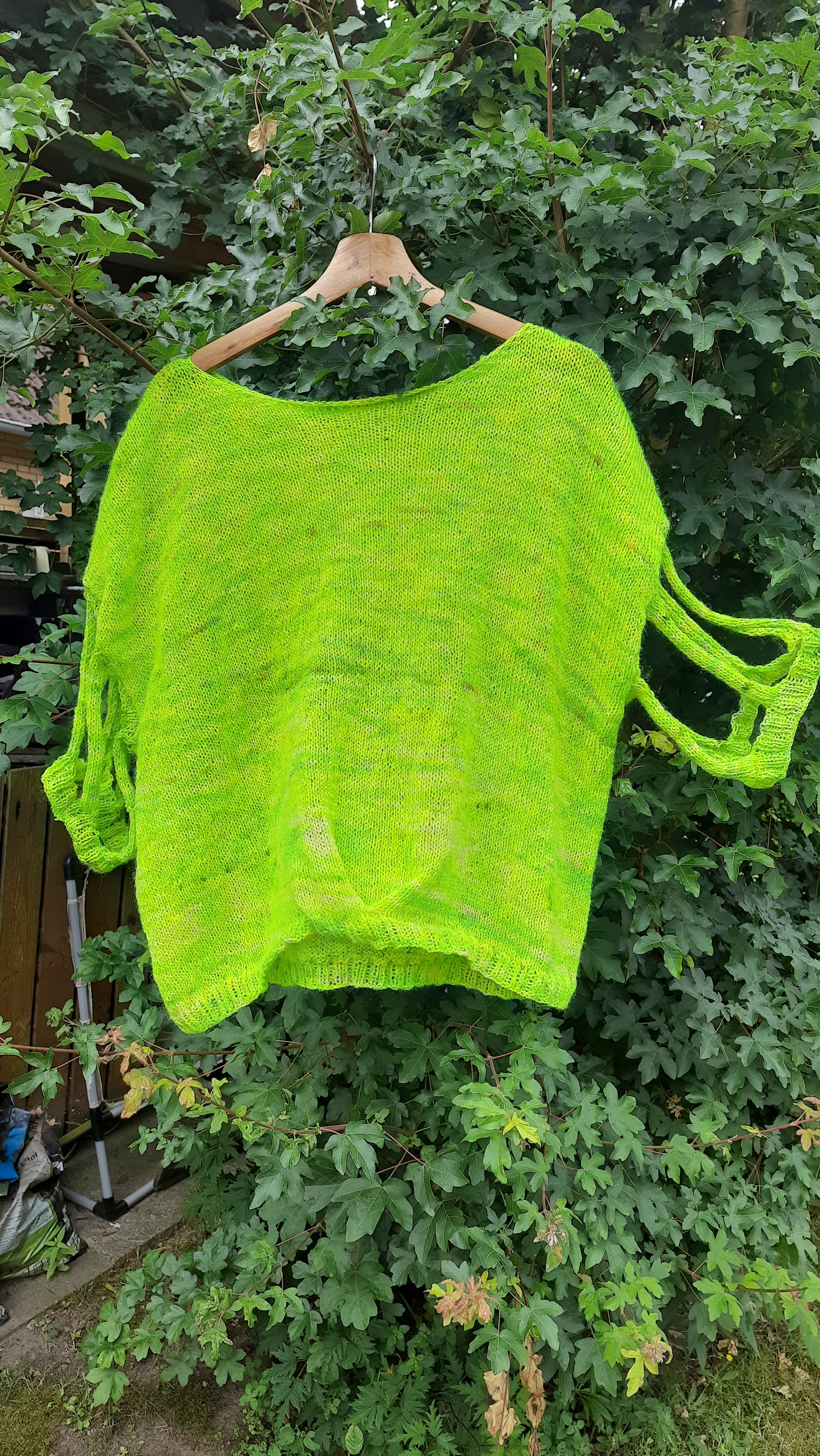 Hier ein neues Strickrezept für ein Shirt. Das schnell gestrickt und auch für Anfänger geeignet ist. Und das schöne ist, man benötigt wenig Garn. Für Größe46/48 benötigt man lediglich 2 Stränge vom Lightfingeringgarn. Ich habe in Strahlegrün gestrickt, aber es gibt auch andere tolle Farben.